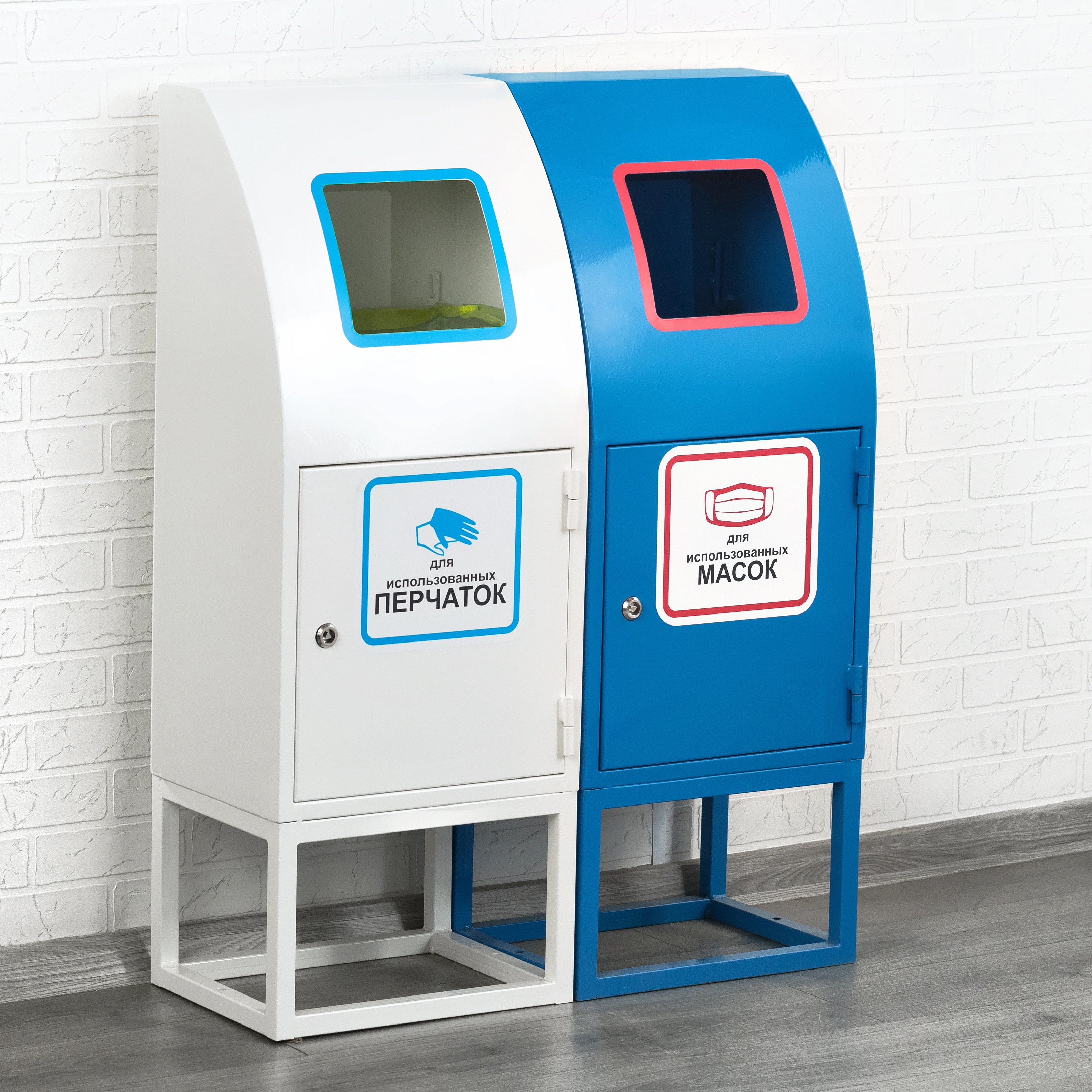 Контейнер для использованных масок и перчаток КМП-1 – это металлическая конструкция, с емкостью временного накопления использованных средств защиты, предназначенных, для дальнейшей утилизации.