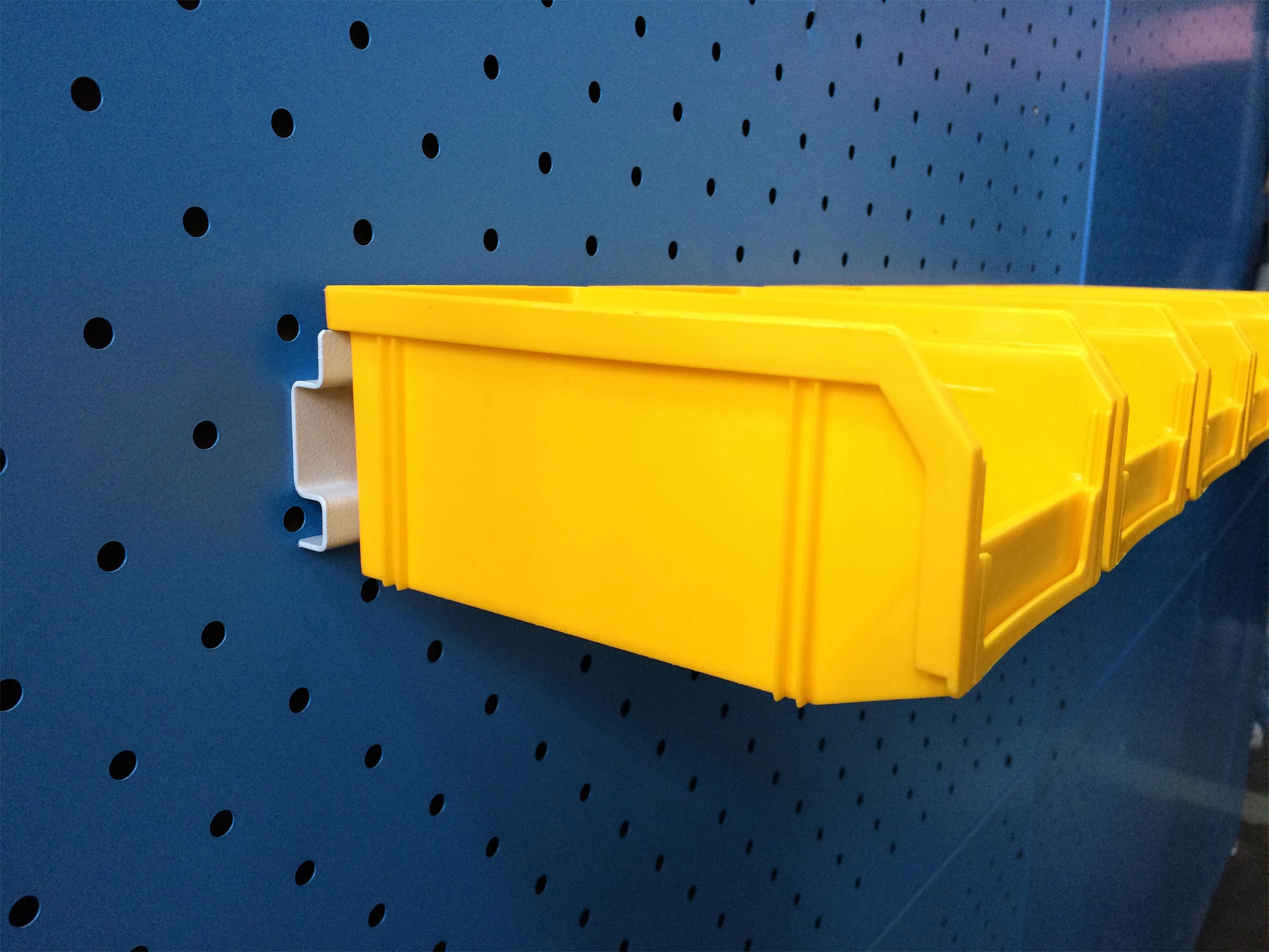 Органайзер настенный Стелла-техник V-1-650 с 6 ящиками серии V-1-синий в комплекте, является отличным решением для организации хранения метизов и различного рода мелкоштучных изделий. Органайзер в виде металлической планки вешается на стену, на экран верстака или над монтажным столом с помощью саморезов или винтов (крепеж для крепления к стене в комплект не входит и приобретается клиентом самостоятельно в зависимости от материала стены). Ящики типа V-1 легко снимаются с держателя для быстрого опустошения или наполнения содержимым, и с той же легкостью возвращаются на место. Яркие цвета ящиков помогают придать красок скучному рабочему пространству. Специальный карман на лицевой части позволяет размещать ярлык с описанием ассортимента хранящихся мелочей, для более быстрого поиска необходимого контейнера. Материал: ударопрочный полипропилен. Габаритные характеристики одного ящика: длина 172мм., ширина 102мм., высота 75мм. Объем 1л. Температура эксплуатации от -20 до +70С.