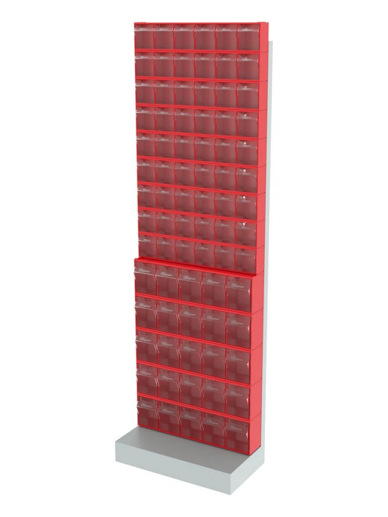 Стойка напольная Стелла-техник 405-00-09-05 (610х325х1850) представляет собой удобную систему хранения на основе откидных коробов. Стойка подойдет для выставочных залов, магазинов, офисов, складов. Комплектация: Рама FOX (610х325х1850) V405 напольная односторонняя с основанием - 1 шт.; Короб откидной Стелла-техник F-600-6 , 600х96х112мм, 6 ячеек, красный, прозрачный – 9 шт. Короб откидной Стелла-техник F-600-5 , 600х140х168мм, 5 ячеек, красный, прозрачный - 5 шт.; Упаковка. Преимущества: Металлическое основание; Значительная устойчивость; Хорошая вместимость; Длительный срок службы.